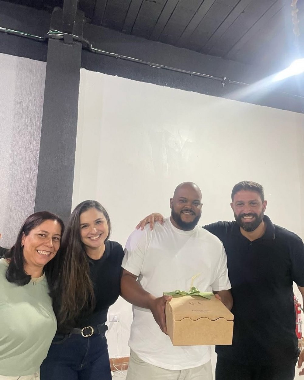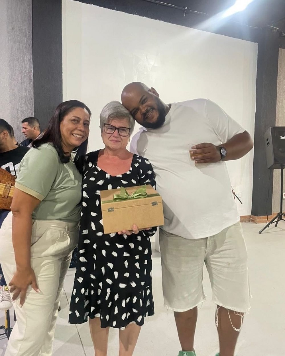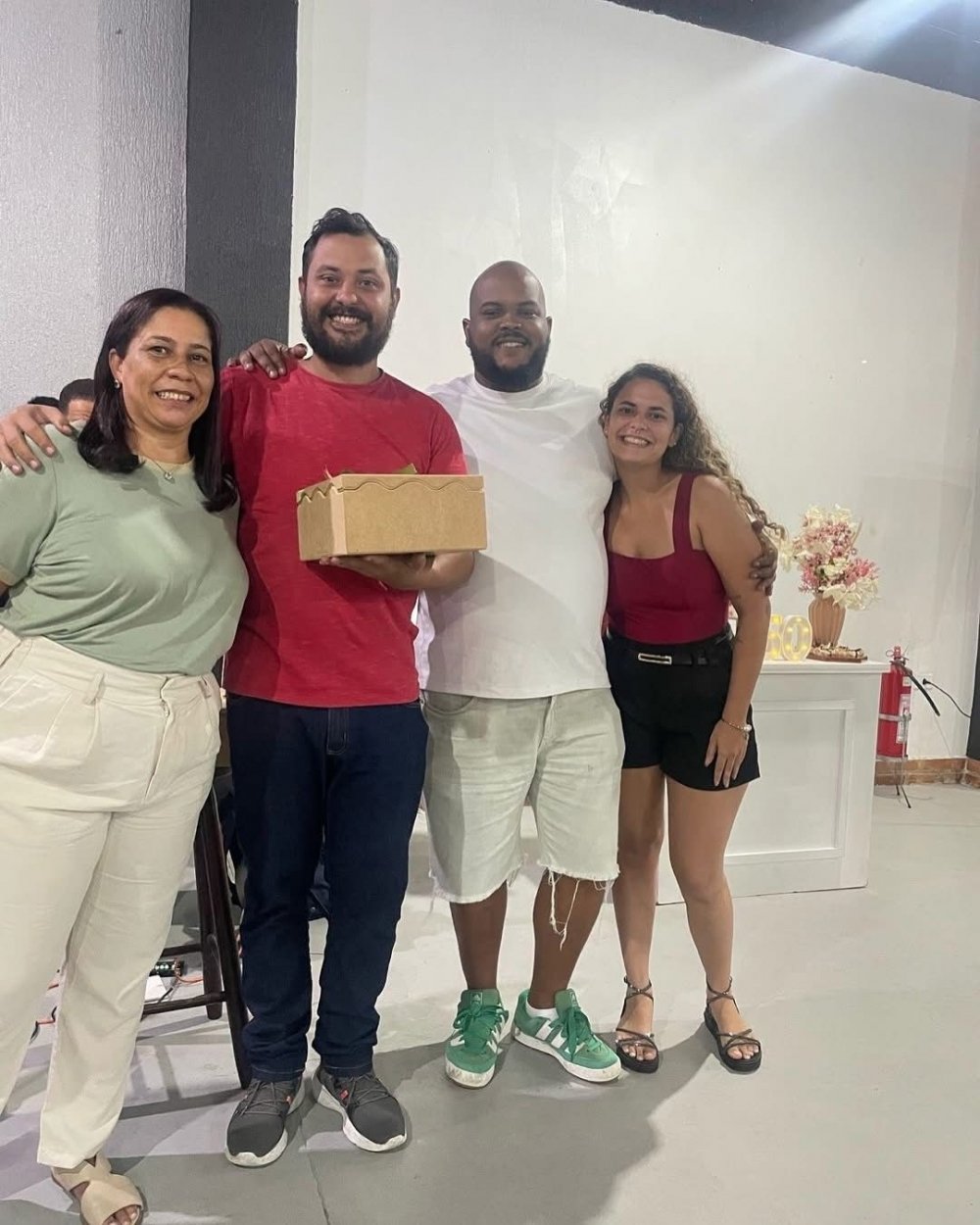 Fagner é meu amigo de mais longa data — mais de 20 anos de amizade, passando por todos os momentos possíveis, dos melhores aos mais difíceis. Inclusive, estava presente no fatídico dia do primeiro beijo do casal… e foi justamente quem me chamou para sair e tomar aquela cerveja que acabou mudando nossa história. Samara conheço há menos tempo, mas já deu pra perceber que é trabalhadora e cheia de energia — embora eu evite convidá-la para comer em casa… o apetite é infinito!