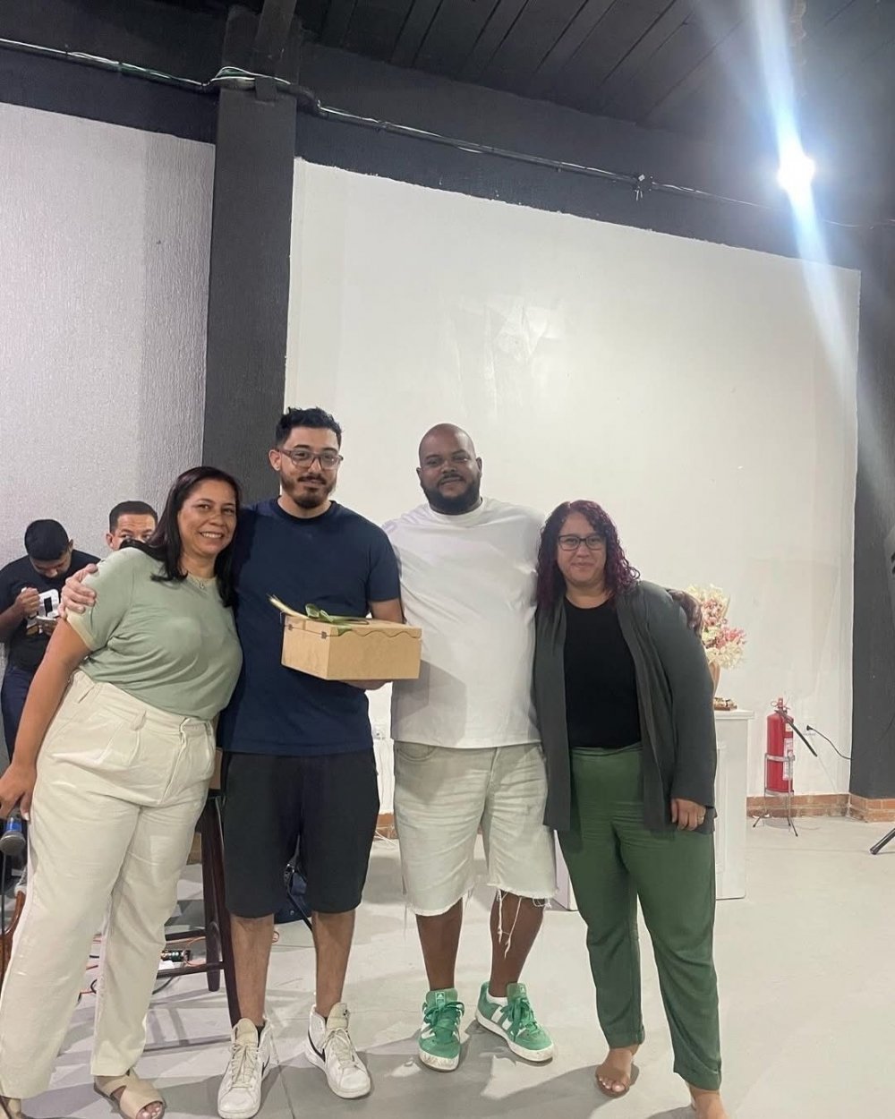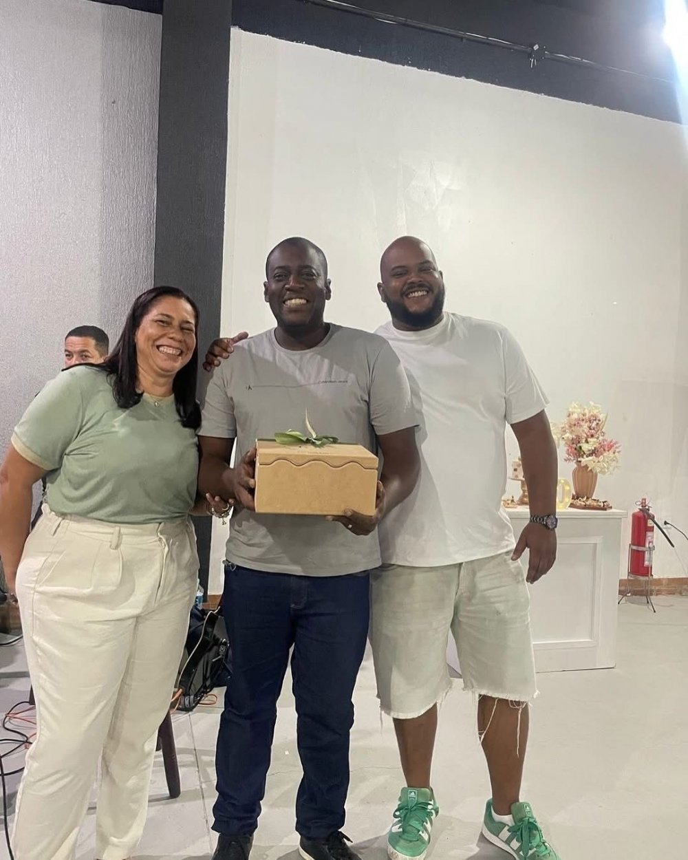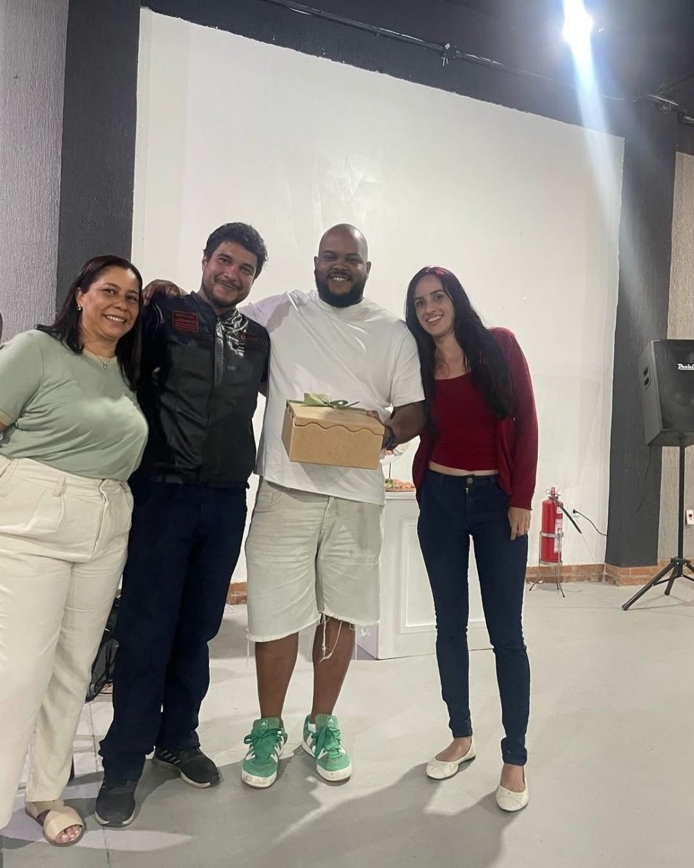 Fagner é meu amigo de mais longa data — mais de 20 anos de amizade, passando por todos os momentos possíveis, dos melhores aos mais difíceis. Inclusive, estava presente no fatídico dia do primeiro beijo do casal… e foi justamente quem me chamou para sair e tomar aquela cerveja que acabou mudando nossa história. Samara conheço há menos tempo, mas já deu pra perceber que é trabalhadora e cheia de energia — embora eu evite convidá-la para comer em casa… o apetite é infinito!
